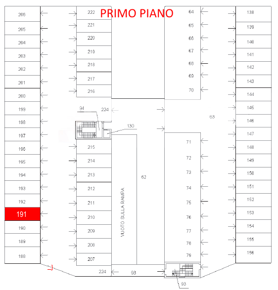 Affitto posto auto, autorimessa coperta al primo piano con ampi spazi di manovra…